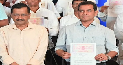 AAP's candidate Amit Palekar with the party supremo Arvind Kejriwal
