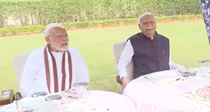 Visuals shared by public broadcaster Doordarshan did not have the conversation audio, but PM Modi walked in to the lawn with Mr Advani’s daughter Pratibha Advani and gave him a bouquet before sitting down for a chat. They were seen smiling and talking animatedly, sitting next to each other.